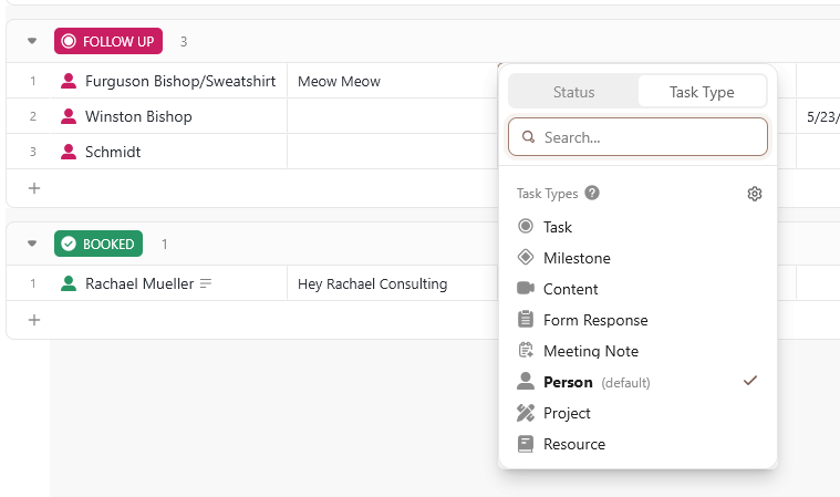 Set up custom ClickUp task types here to set the default as Person, instead of a boring normal task: