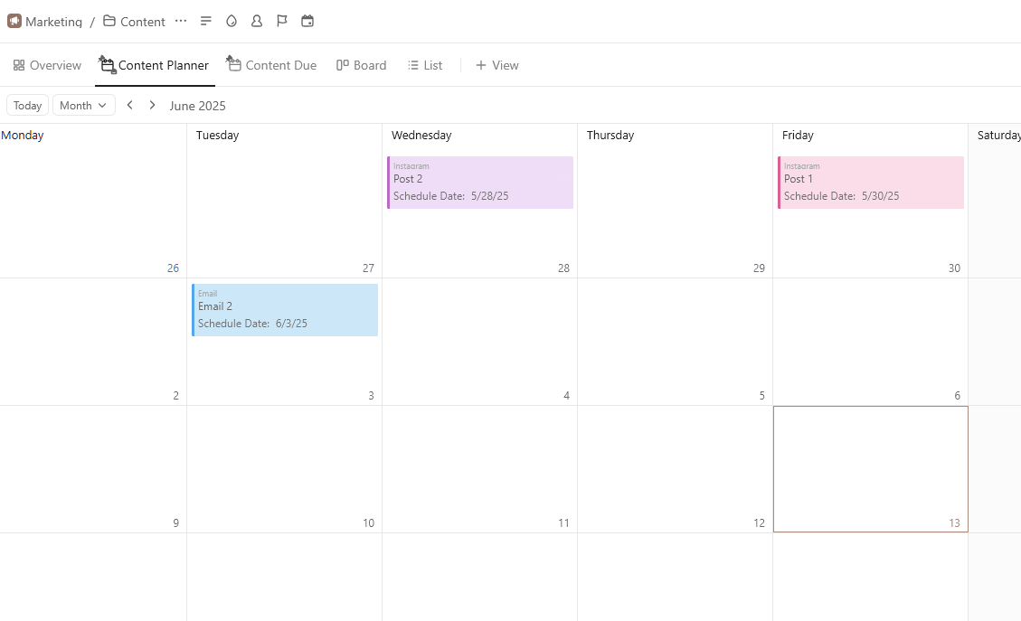 Marketing content calendar