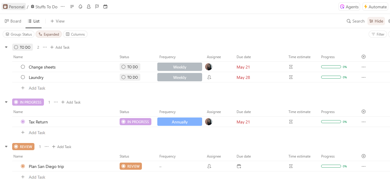 Personal tasks and reminders (because life)