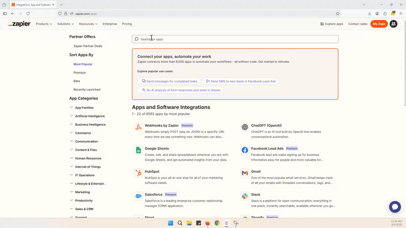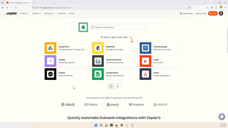 Zapier lets you create simple automations, called Zaps, that trigger when something happens in one app and automatically take action in another.